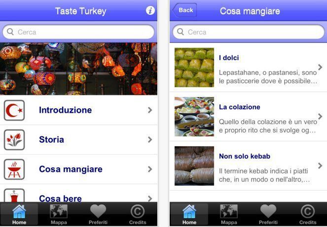 L’App raccontare della gastronomia turca ed è possibile usarla non solo con Apple ma anche con Android, disponibile sia in italiano che in inglese. La cosa interessante è che oltre ai classici consigli su ristoranti e locali da provare in quet’app vengono anche spiegati i piatti, gli ingredienti e le particolarità, molto distanti da noi e che quindi possono un po’ spaventarci. L’app si può usare anche in modalità offline, che all’estero non si sa mai :)