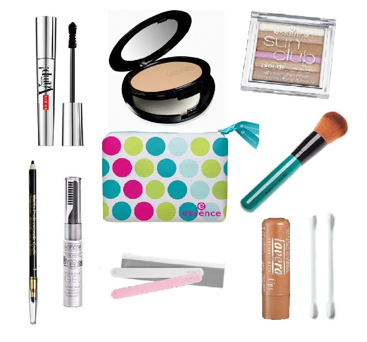 Tutti questi prodotti possono tranquillamente rientrare in una piccola pochette per nulla ingombrante, se ne trovano moltissime in giro di molto economiche, vi consiglio quelle Essence perché sono molto resistenti e simpatiche.