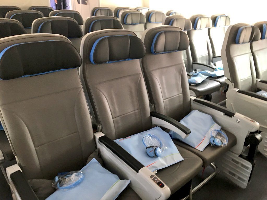 L’aereo è super nuovo, tanto che l’odore quando si entra è quello di una casa nuova, immacolata. L’aereomobile è perfetto, pulito e il personale di bordo (forse anche perché si trova a lavorare in un ambiente bellissimo – sì, lo è davvero) è cordiale e molto gentile. Noi ci siamo trovati molto bene.