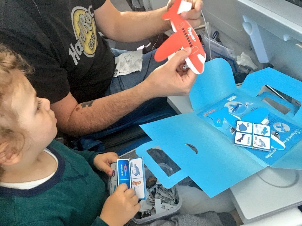 Il primo volo da adulto significa anche la prima volta nel sedile da solo con la propria cintura di sicurezza da allacciare al momento della partenza e il proprio kit giochi con cui passare il tempo per tutto il volo. Il kit giochi mi ha davvero lasciata piacevolmente stupita, non me lo aspettavo proprio e devo dire che Giulio ci ha giocato per un’ora abbondante.