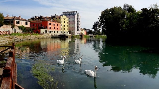 Il noleggio barche si chiama simpaticamente “BarchiAMO” :). Imperdibile è anche il Lago Verde, magari fermandovi nell’omonima trattoria per pranzo. Le specialità della casa? Carne alla grigia e gelato..giusto per tornare leggeri sui pedali. Attualmente per arrivare in questa zona c’è una piccola deviazione temporanea rispetto all’itinerario classico, ma non preoccupatevi, è tutto molto ben segnalato! Ancora una decina di chilometri tra canneti e anatre che vi attraversano la strada e sarete arrivati a Treviso,capoluogo veneto e città di origine romana molto elegante.