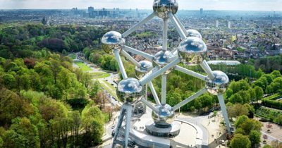 All’interno del Parco Heysel, l’Atomium è un’imponente costruzione in acciaio che replica i nove atomi di una cella unitaria di un cristallo di ferro, creata in occasione dell’Expo del 1958.