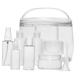 I contenitori trasparenti per volare sono davvero utili. Puoi metterci dentro tutto quello che ti serve, dallo shampoo, al bagnoschiuma, fino al profumo. Un po’ di tutto da portare in viaggio per non correre il rischio di farsi buttare via confezioni intere o per non stare a misurare ogni liquido della valigia. Io ce l’ho, in vendita da Sephora.