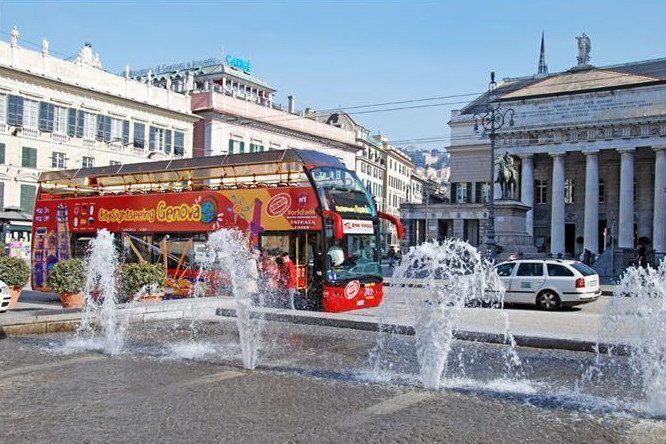 Il tour della città dura quasi un’ora e diciamo che di parlato non è che vi sia molto, mi aspettavo di più. Tuttavia per chi come me ha solo due giorni per girare la città è un’ottima maniera per vedere gli scorci ed i luoghi più suggestivi di Genova, appuntarsi eventualmente la zona che si preferisce visitare meglio. La visita prevede otto fermate, ed anche io l’ho usato nella forma di bus tradizionale scendendo quindi in piazza De Ferrari, la più importante delle città, per fare un salto al vicinissimo teatro Carlo Felice e fare poi uno ‘struscio’ nelle vie della movida e shopping genovese.