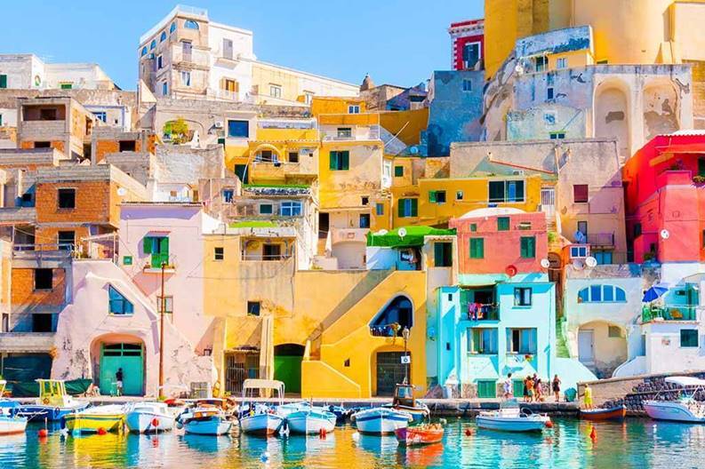Con i suoi soli 16 chilometri di perimetro e poco più di diecimila abitanti, Procida è la più piccola delle isole del golfo di Napoli, che comprende anche Capri e Ischia. Fa parte del comune di Procida anche il piccolissimo isolotto di Vivara, collegato ad essa da un ponte pedonale.