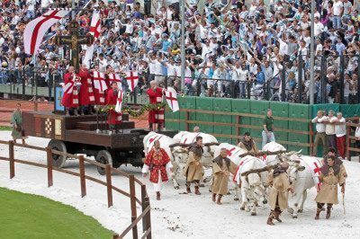 Domenica 26 maggio è il giorno del palio e della sfilata storica. Una lunga sfilata attraversa le vie della città, con in prima fila i rappresentanti dei comuni della lega con i rispettivi gonfaloni. Seguono i gruppi delle contrade, ognuna con i propri abiti, simboli, colori e gioielli, che rappresentano vari aspetti della vita medievale: la guerra, la musica e la danza, il lavoro, la nobiltà, la caccia, i giochi…