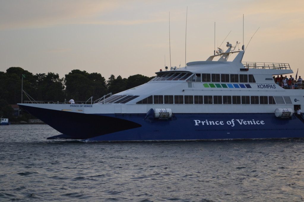 L’ultima alternativa è quella di utilizzare i traghetti che però solitamente sono attivi soltanto dalla primavera, circa nel periodo di Pasqua, fino a settembre / ottobre ed hanno prezzi un po’ impegnativi. Da Venezia si raggiungono in poche ore alcune delle cittadine della costa ovest. Si può scegliere di viaggiare con gli aliscafi della Venezia Lines che arrivano a Porec, Rovigno e Pula con prezzi di sola andata di circa 70€ che variano a seconda del periodo e delle offerte; quest’anno Trenitalia aveva anche proposto uno sconto del 50% su queste linee se in abbinato si acquistava un biglietto delle Frecce. Il prezzo di un biglietto a/r non cambia a seconda della stagione e per gli adulti è di 121 o 124€: non propriamente economico… ma garantisce un arrivo spettacolare in Istria al tramonto.