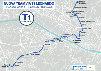La linea T1 Leonardo è stata ampliata con un ulteriore tronco, che l’ha praticamente raddoppiata verso nord, fino a raggiungere Careggi, la clinica ospedaliera più importante della città.