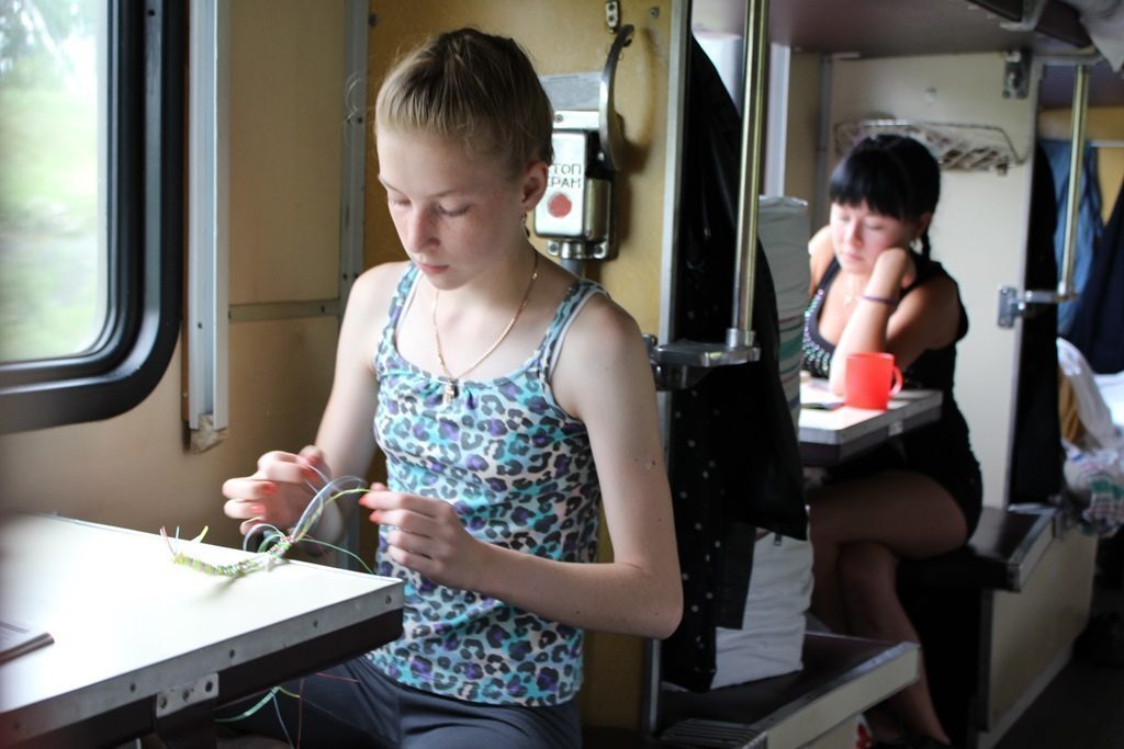 L’ultima sera su quel treno, durante una sosta più lunga, abbiamo fatto una piccola festa lungo i binari: mentre Olga-grande ballava e cantava, accompagnata da Alain che suonava la chitarra, abbiamo vissuto ogni istante di quel momento, avvolte dall’oscurità della tiepida notte siberiana. Ho letto, pensato, fotografato, dormito benissimo e visto il mondo cambiare, dal finestrino, all’interno del nostro scompartimento e dentro di me.