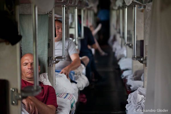 Il vagone non ha alcuna divisone interna o scompartimento che sia, per ogni vagone ci sono circa 45 persone che dormono, mangiano e viaggiano praticamente insieme.