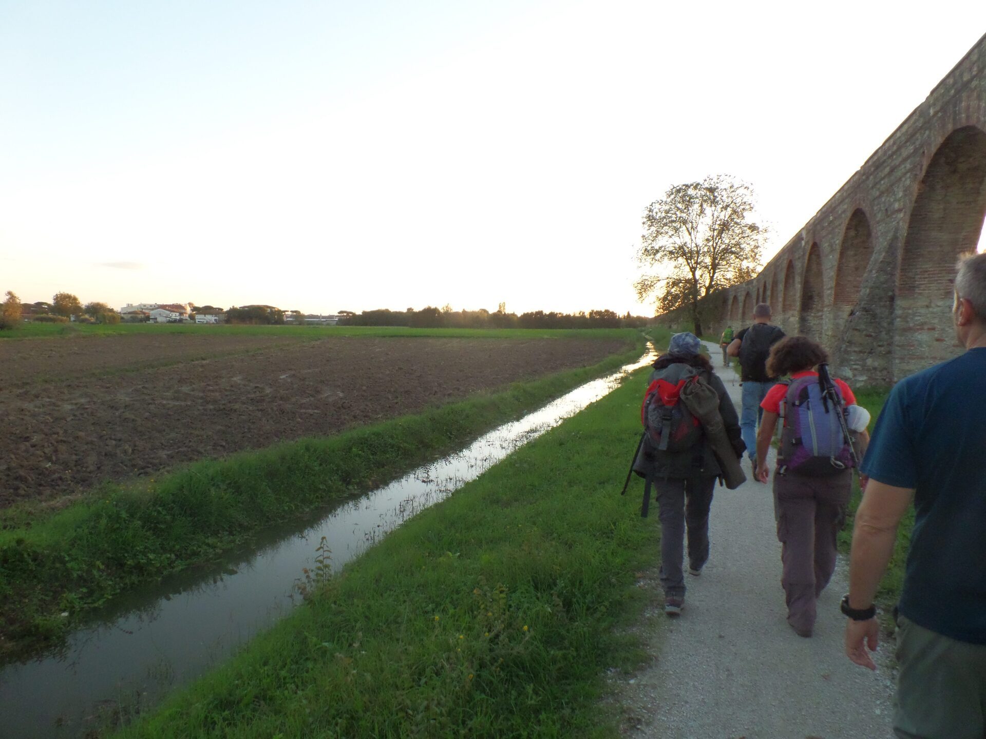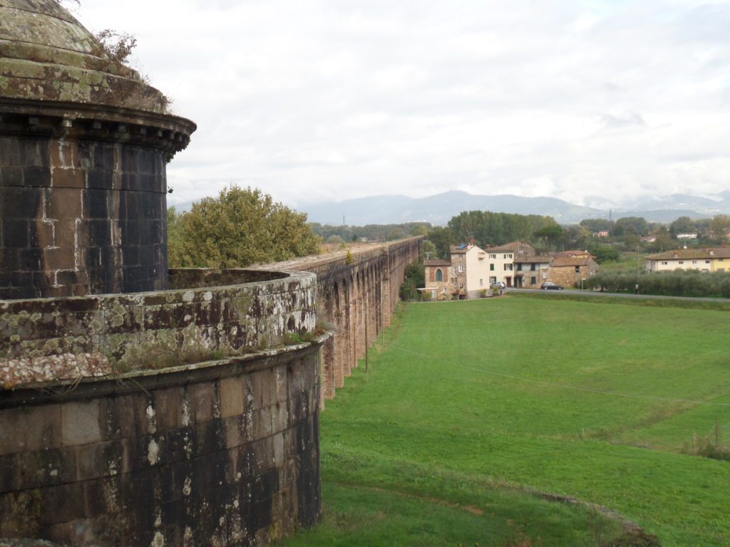 Il percorso che vi indico è quello fatto da Lucca con arrivo a Pisa, ma come ho già detto potete anche fare l’inverso. Subito dietro la stazione ferroviaria di Lucca si individua l’inizio del sentiero: un tempietto circolare (un po’ malandato) che segna l’inizio dell’Acquedotto del Nottolini, le cui monumentali arcate si vedono chiaramente anche dall’autostrada A11: si cammina proprio ai piedi delle arcate, in una bella campagna.