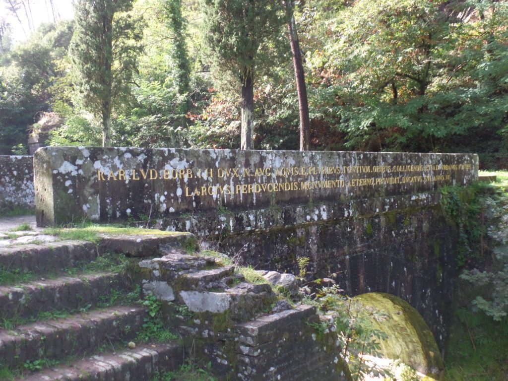 Salendo nel verde si arriva al luogo più magico di tutto il percorso, una valletta immersa nel verde dove scorre un canale per la regimazione dell’acqua, ci sono vari edifici per purificare ecc. Il luogo è magicamente isolato e ha un nome affascinante, Le parole d’oro, per una iscrizione latina (le cui lettere sono dorate) su un ponte di pietra.