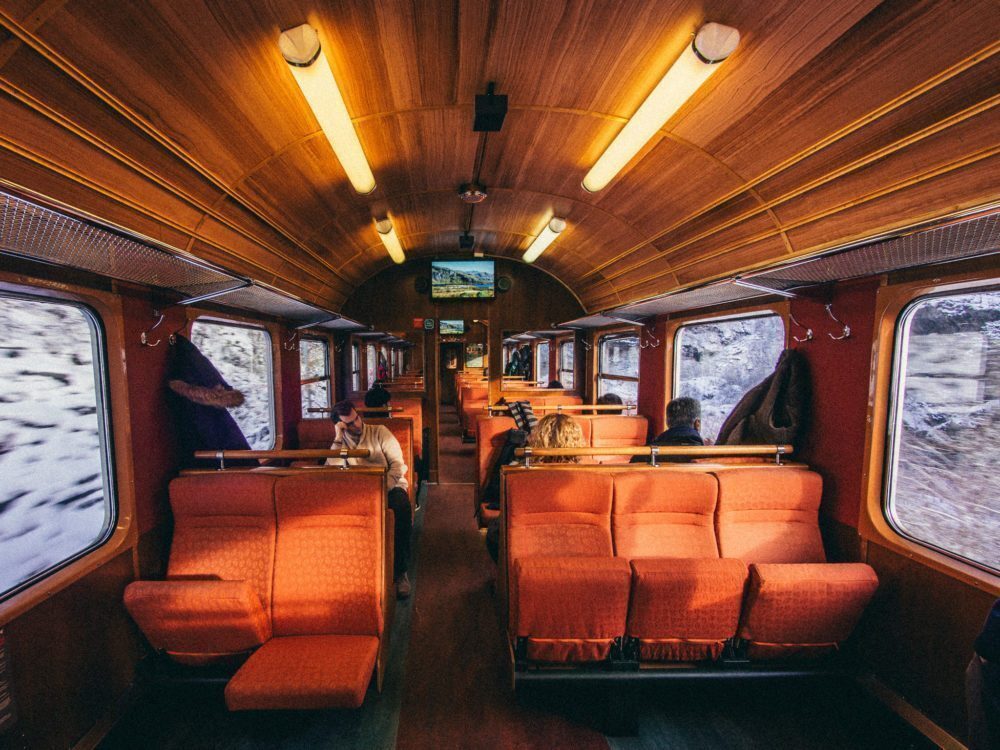 Quando il treno arriva mi precipito in una delle carrozze, con la speranza di scaldarmi presto. Sembra di essere catapultati indietro nel tempo: i vagoni color verde muschio sono di un’altra epoca, e gli interni con le finiture di ottone e i sedili rivestiti di spesso tessuto rosso hanno un’aria decisamente démodé. Tutto è incredibilmente affascinante. Mi guardo intorno e mi rendo conto che sembriamo una scolaresca di bambini in gita a Legoland: chi accarezza il rivestimento dei sedili con le mani, chi fotografa i divisori di legno, chi prova ad abbassare i finestrini. Quando partiamo ho il batticuore: in poco meno di un’ora il treno percorrerà i venti chilometri di distanza e gli oltre 800 metri di dislivello scendendo lentamente fino al capolinea.