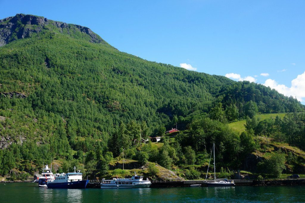 L’arrivo al capolinea, circa dieci minuti dopo, è un’altra sorpresa. La stazione di Flåm è formata da un paio di edifici di legno rosso e da un unico binario morto: da lì i treni non vanno da nessuna parte, possono solo tornare indietro, risalendo lungo la montagna, verso Myrdal. Mi guardo un po’ intorno, ed effettivamente non c’è molto in questo villaggio di poco più di 300 abitanti: il piccolo porto e l’Aurlandsfjorden sono proprio di fronte a me, mentre alla mia destra c’è il Fretheim Hotel.