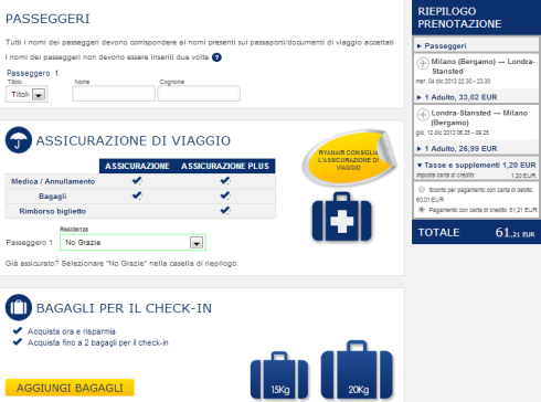 Tantissimi si sbagliano proprio in uno dei momenti più delicati della prenotazione. Spesso i siti, una volta che avete deciso volo, meta e persone, fanno fare una serie di passaggi davvero noiosi, in cui però bisogna stare più che attenti. L’assicurazione ad esempio o l’acquisto noleggio auto, sono voci che potete saltare. Dove non potete specificare il vostro dissenso, potete andare a vedere la voce Assicurazine viaggio non richiesta nel menù a tendina che vi si presenta davanti. Ogni tanto se ne inventano una, giusto per farvi confondervi le idee… arriverete a pensare che dovete comprare un’assicurazione o prenotare l’auto con loro per forza, ma attenzione perché non è così!