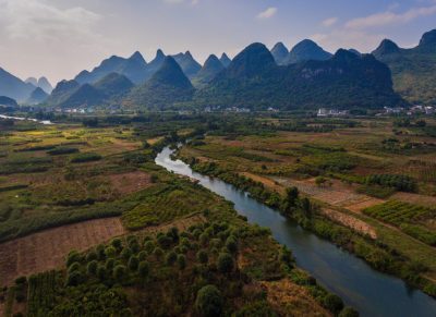 Yangshuo è una delle zone più famose in Cina perché vanta di un paesaggio naturale carsico da togliere il fiato. Se non hai presente le colline carsiche di Guilin e Yangshuo nessun problema: prendi l’immagine di una banconota da 20 Yuan e guarda il disegno stampato.