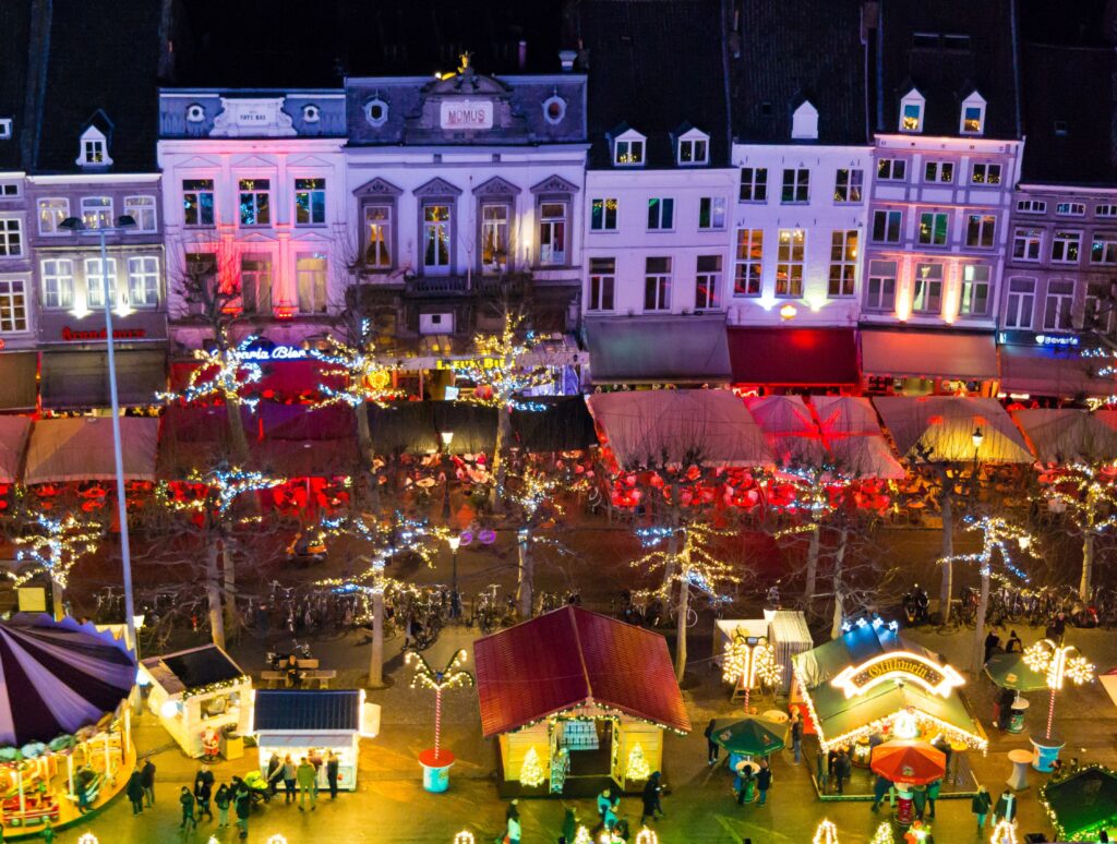 A Maastricht l’inverno è tutto un gioco. Qui da fine novembre a fine dicembre, nel centro città le luci illuminate collegano tutte le piazze del centro storico. Nella piazza del Vrijthof si potrà respirare la fantastica atmosfera natalizia allestita per l’occasione con una grande pista da pattinaggio su ghiaccio, il mercato natalizio e la ruota panoramica.