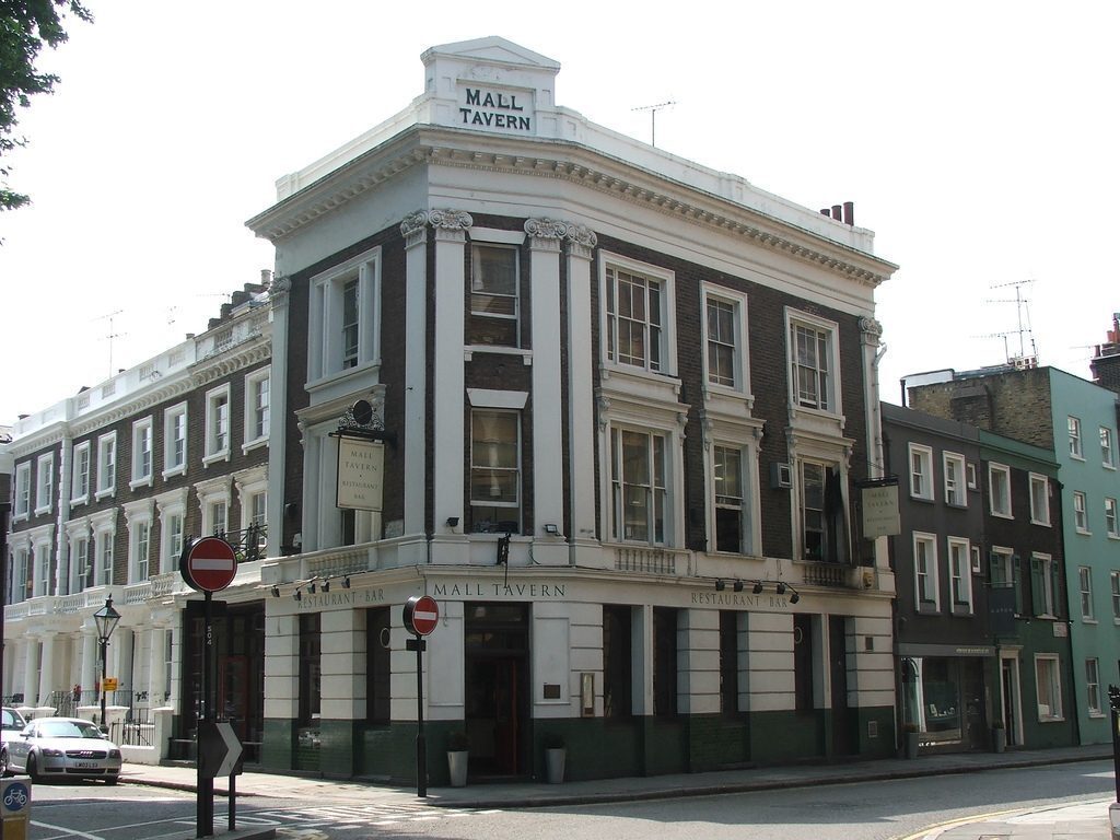 Inconfondibile palazzo ad angolo dipinto di bianco, a poca distanza a piedi dalla metro di Notting Hill, The Mall Tavern è uno dei pub più affascinanti e caratteristici di un quartiere ormai famosissimo a Londra. I piatti sono ricercati e serviti in modo sempre originale e l’arredamento è curato e raffinato. Se decidete di cenare lì, prenotate il Kitchen Table, una tavola privata situata in una cucina finemente arredata, dove potrete gustare i piatti scelti per voi dallo chef. Per una sosta più rapida ed una birra optate per il bancone all’ingresso oppure, in una bella giornata, sedetevi ai tavolini del bellissimo giardinetto interno, con dipinti molto realistici sulle pareti, raffiguranti lampioncini e finestre immaginarie popolate da personaggi che sembrano veri.