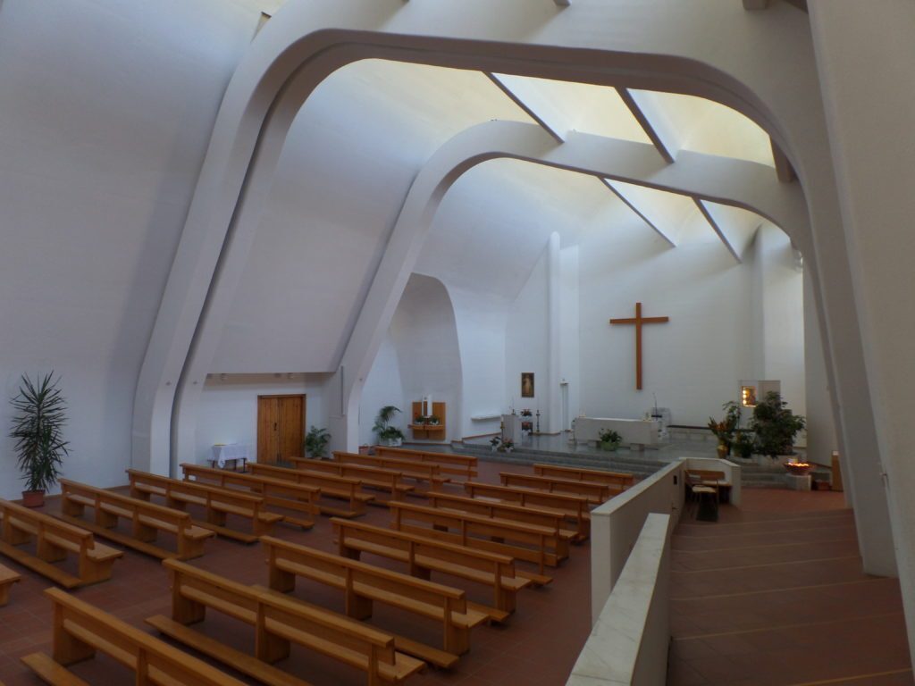 Se la Rocchetta vi ha inebriato potete andare a “raffreddarvi” in paese, a Riola, dove si trova l’altra sorpresa. Sto parlando della Chiesa parrocchiale: uno degli ultimi progetti del celebre architetto finlandese Alvar Aalto, costruita alla fine degli anni ’70.