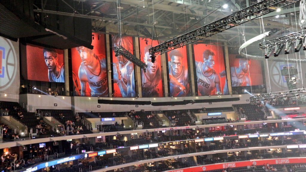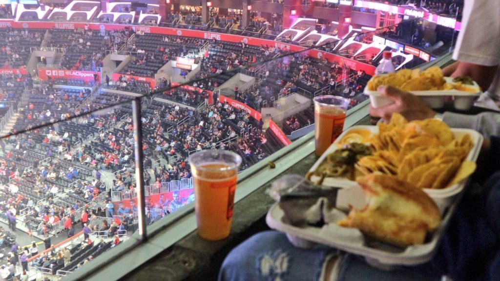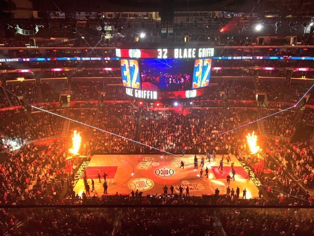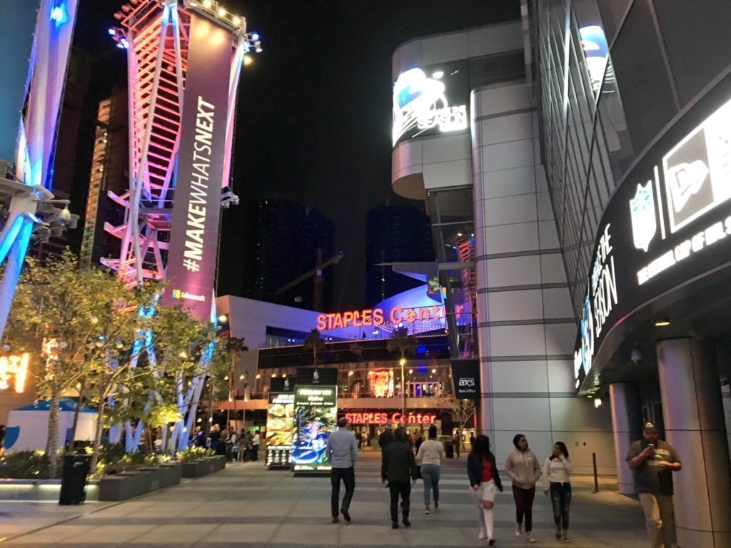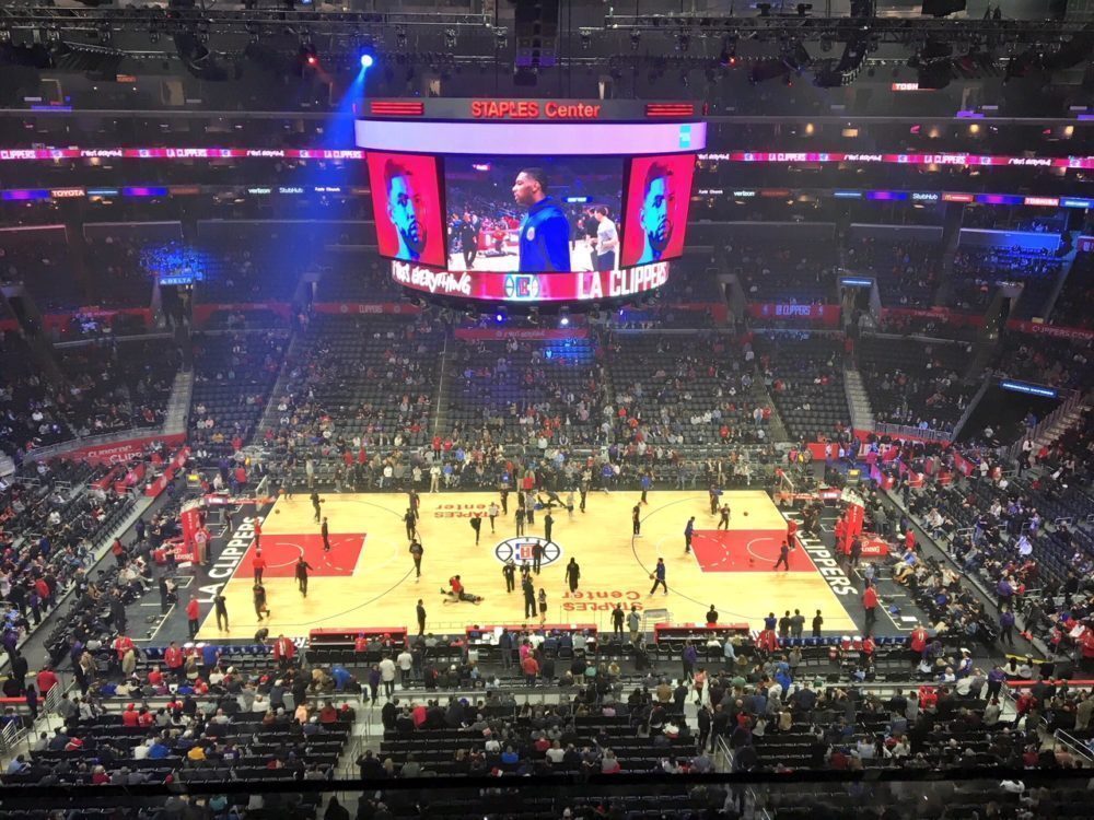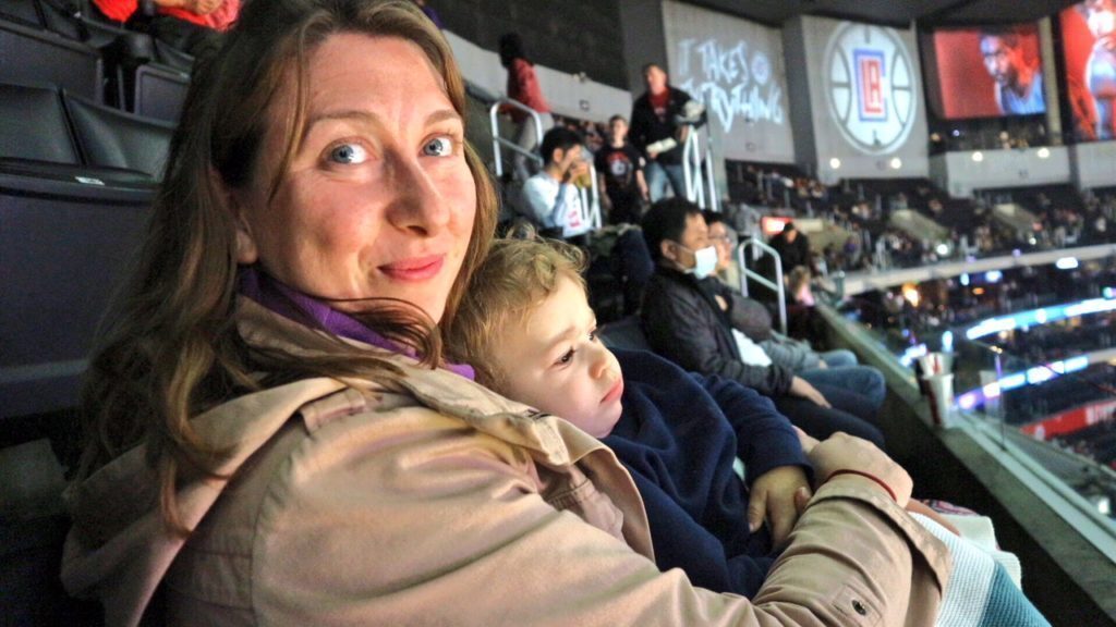 La seconda sera del nostro viaggio a Los Angeles, avevamo l’appuntamento con la nostra prima vera partita di basket americano. Ci siamo presentati con un’ora di anticipo allo Staples Center, così da mangiare qualcosa all’interno e per fare i controlli. Gli zaini devono essere controllati ed etichettati all’ingresso, i bambini sotto i 3 anni non pagano e all’interno dello stadio c’è un’enorme varietà di cibo disponibile per chi vuole mangiare, prima, durante o dopo la partita. A mezz’ora dall’inizio abbiamo cercato i nostri posti e ci siamo accomodati.