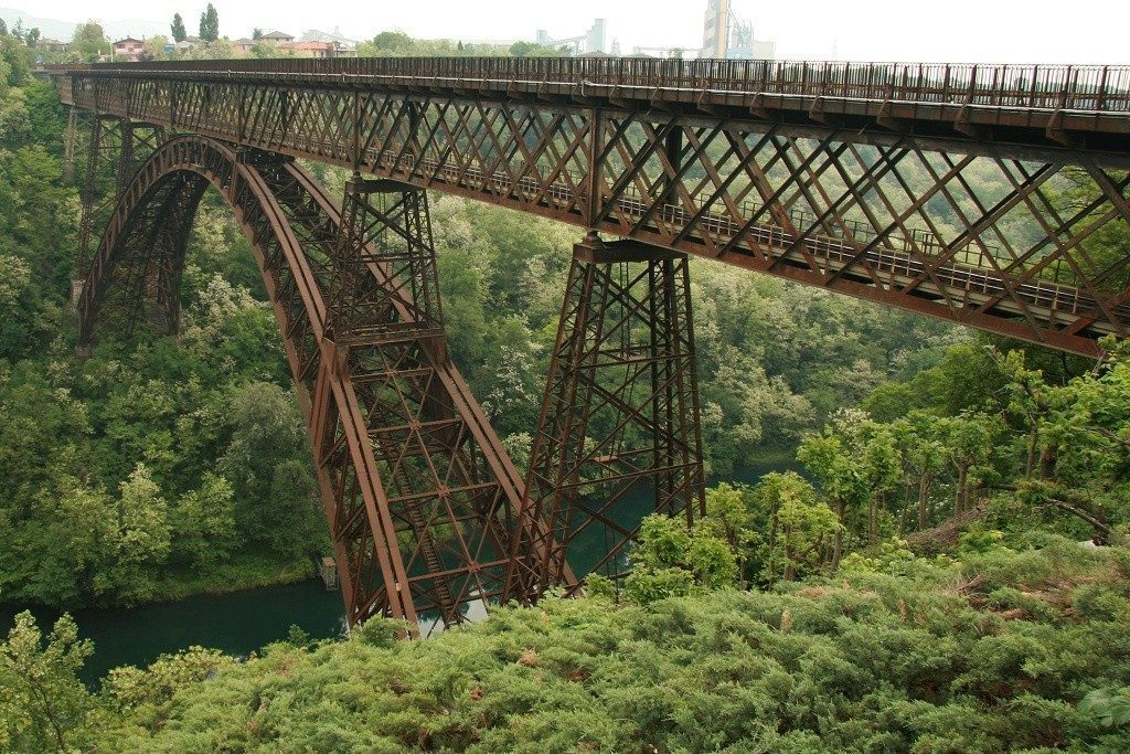 Il ponte progettato dall’ingegnere Svizzero Jules Röthlisberger (1851-1911), e realizzato dalla Società Nazionale Officine di Savignano, é lungo 266 metri e si eleva per 85m sopra il fiume Adda.