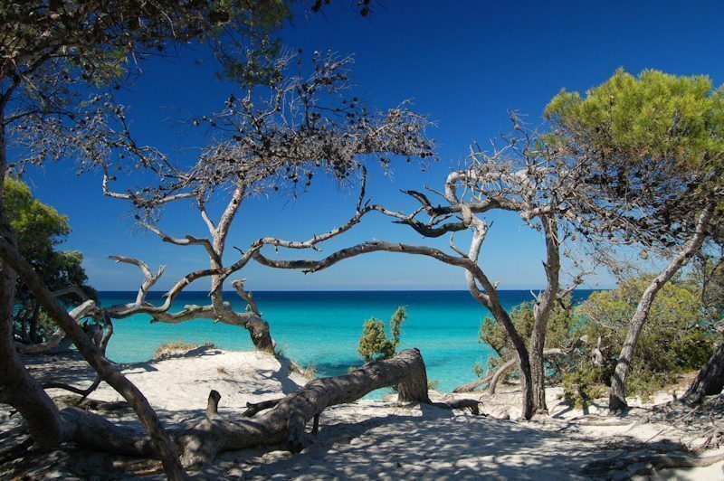Seguendo la costa verso ovest, procedendo verso il promontorio che punta alle Isole Sanguinarie, l’abitato di Ajaccio sfuma verso un paesaggio di macchia mediterranea e le spiagge si fanno via via più piccole e particolari.