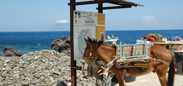 Sì perchè ad Alicudi non c’è spazio per auto, motorini o qualsiasi altro mezzo di locomozione rumoroso: l’unico “rumore” di locomozione è il ticchettio degli zoccoli dei muli. Un ritorno alle origini, al passato, all’essenza della vita e della natura. Non ci sono strade se non una mulattiera che incorona l’isola: saliamo le scale e nonostante le nuvole, riusciamo a scorgere tra i tetti delle casette un paesaggio incontaminato che tanto ricorda a i quadri paesaggistici di altri tempi. I tetti delle case sembrano dei contenitori e la mia intuizione non mi porta fuori strada: sono stati concepiti in modo tale da poter raccogliere l’acqua piovana, unica fonte idrica per l’isola.