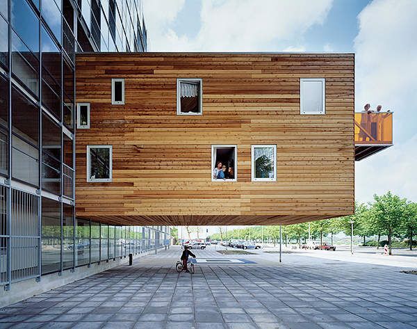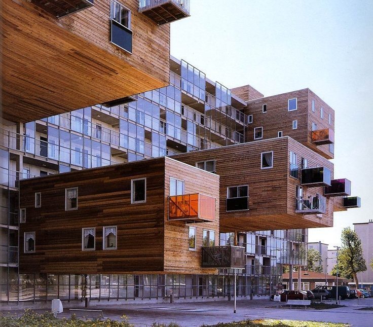 Dirigetevi verso il porto, a ovest, qui troverete la prima architettura che vi consiglio di visitare: un grande blocco residenziale sull’acqua che ricorda i container accatastati ai porti per il trasporto delle merci. Lo so é bruttissimo, ma é tanto brutto quanto interessante. I residenti possono attraccare la barca direttamente ai piedi dell’edificio ed all’interno possono godersi un panorama privilegiato del mare. É anche un edificio molto social: c’è una vasta tipologia di alloggi che garantisce un mix sociale di utenti, una parte é addirittura destinata all’edilizia popolare. In più sono stati ricavati degli spazi comuni, tutti colorati, da destinare a piccole sale lettura, spazio giochi bambini, zone relax.
