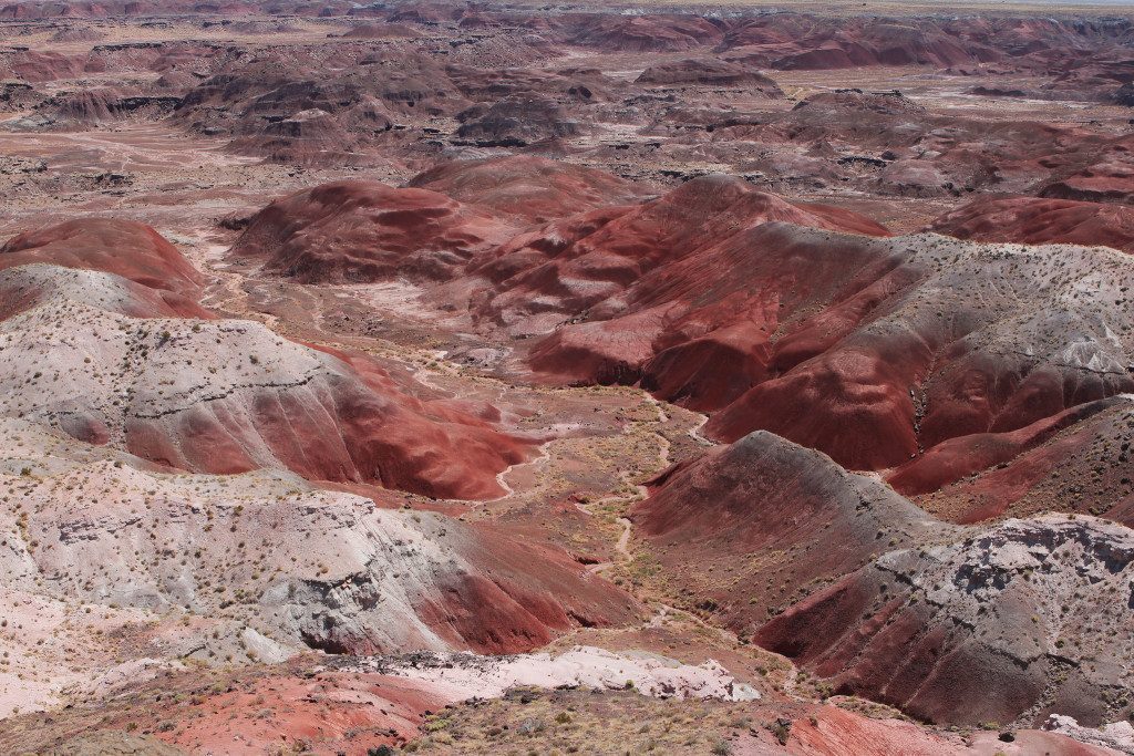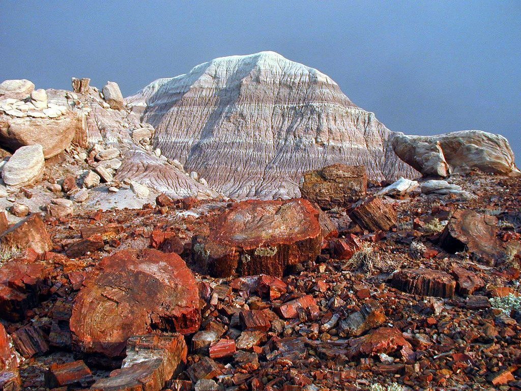 Siamo a circa 38 km (21 miglia) ad ovest di Holbrook e dopo questa breve ma interessantissima panoramica delle colline colorate entriamo nel Petrified Forest N.P. dove ci attende una distesa di tronchi di albero trasformati in pietre semipreziose dai depositi alluvionali nel quale i tronchi sono marciti e con il passare dei millenni i sali minerali hanno sostituito il legno mantenendone la forma.
