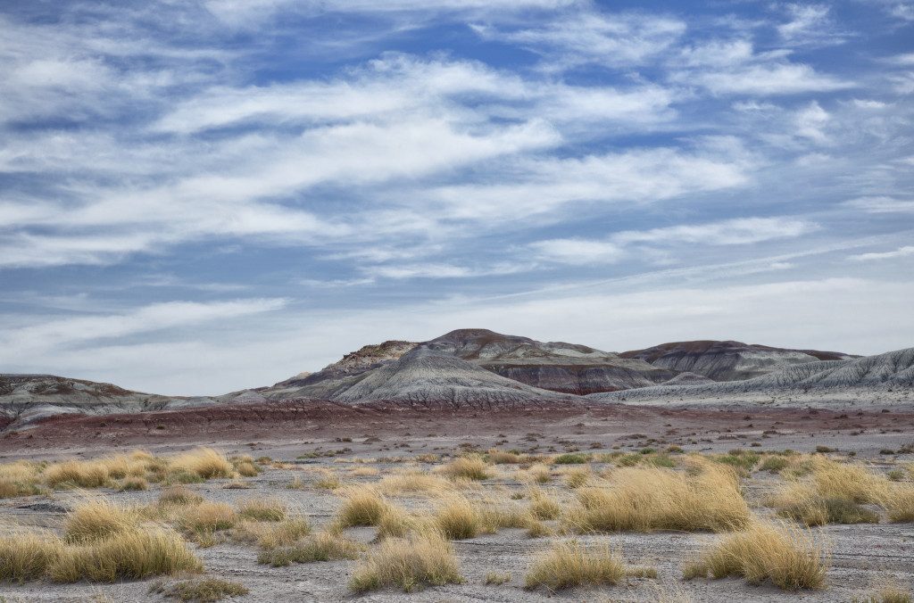 Siamo nell’Arizona, sul tracciato della ex US 66 (ora I-40), dove si trova il Deserto Dipinto che consiste in una serie di colline i cui fianchi sono colorati dai minerali che si sono depositati a strati in varie epoche per cui questa parte di deserto assume colori che vanno dal giallo al rosso al bianco e addirittura al blu.