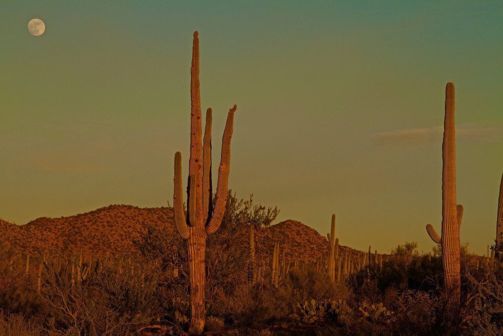 Da Phoenix si raggiunge Tucson alla cui periferia sud est c’è il Saguaro National Park che è un santuario di questi enormi cactus; se ne vedono migliaia semplicemente percorrendo il “loop” che forma il parco. La strada è asfaltata e non molto lunga e il parco si trova attaccato alla città e questa escursione non presenta alcuna difficoltà ma è spettacolare la vista di questi cactus soprattutto se effettuata nel tardo pomeriggio con il sole prossimo al tramonto che qui assume una colorazione rosso-arancia che contrasta con il blu intenso del cielo e con le sagome dei saguari che creano atmosfere uniche.