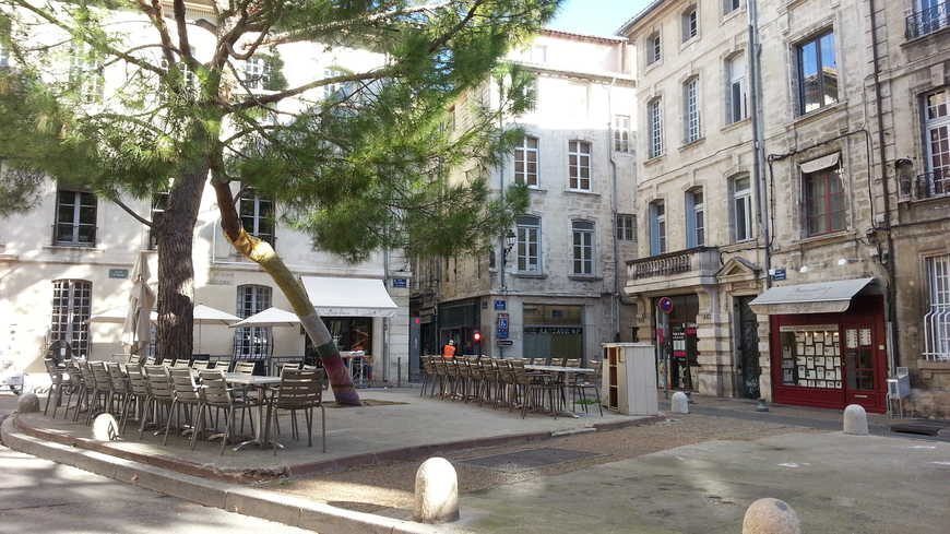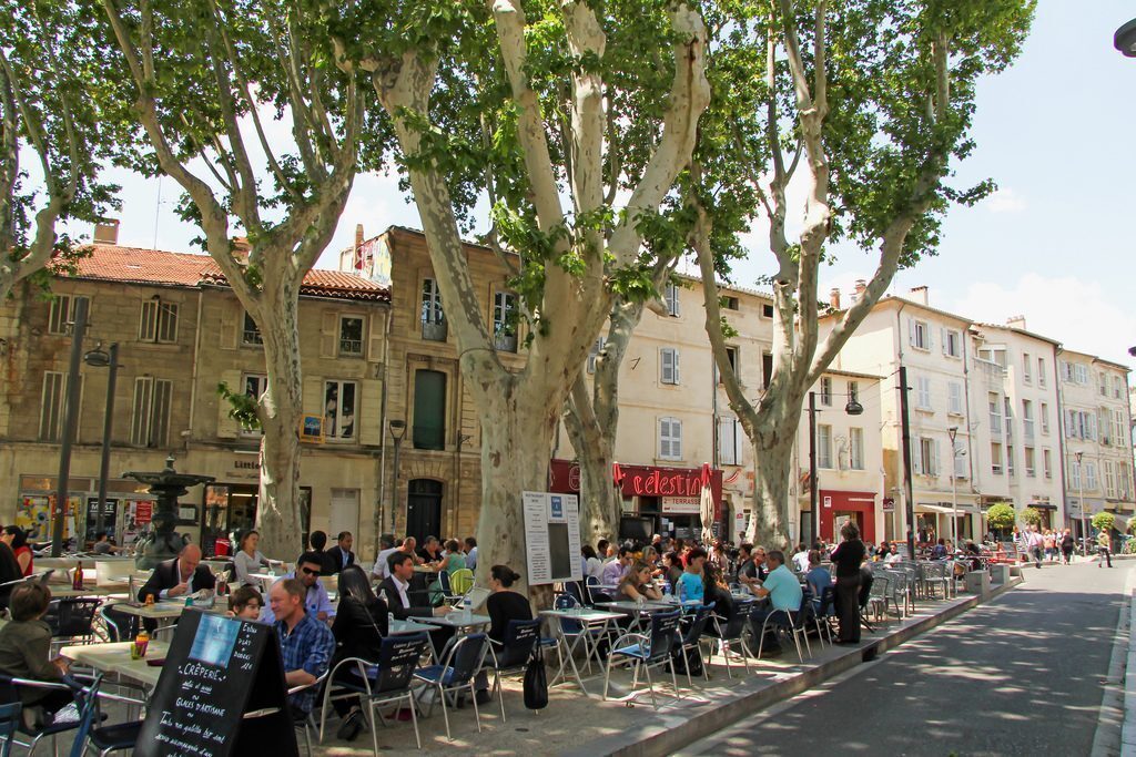 I bar e i ristoranti si susseguono uno dopo l’altro sui lati lunghi della piazza: hanno tutta l’aria di essere trappole per turisti, con le fotografie dei piatti e i menu tradotti in almeno cinque lingue. È uno dei due lati corti della piazza, quello che prosegue diventando Rue Saint-Agricol, che riserva le soprese migliori: la prima è Oliviers, negozio che vende tutto quello che ha a che fare con le olive, dall’olio, alle saponette, dai profumi ai dolci. La seconda sorpresa è la boutique di Fragonard, storica profumeria con sede a Grasse, in Costa Azzurra.