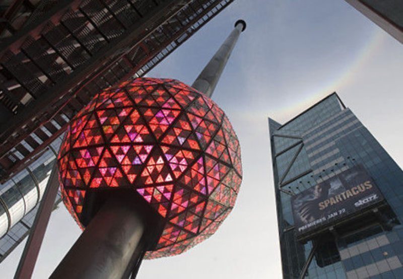 La sfera luminosa di Times Square, ogni anno scende per 23 metri dando così il via al countdown verso la mezzanotte che porterà a salutare un vecchio anno e dare il benvenuto al nuovo. Ogni anno milioni di persone che si trovano nella piazza più gremita di new York, a Times Square, si mettono con il naso all’insù guardando la palla e la sua lenta discesa. La palla è ricoperta da 2.688 triangoli di cristallo Waterford, lungo un’asta posta alla sommità dell’edificio One Times Square e piano piano scende verso il basso.