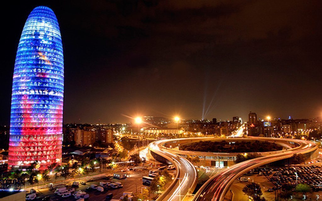 La Torre Agbar, grattacielo simbolo della città e dalla forma caratteristica, di notte si illumina e in occasione delle festività diventa un vero e proprio spettacolo luminoso visibile da molti punti della città