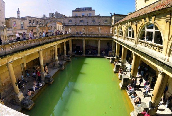 La cittadina di Bath, come evoca il suo nome, è famosa per i bagni romani. Il sottosuolo è ricco di sorgenti termali naturali e Bath è l’unica città d’Inghilterra ad averne. I romani furono tra i primi a scoprire questa caratteristica e proprio qui a Bath (all’epoca “Aquae Sulis”) costruirono il più elegante centro termale religioso dell’Europa settentrionale, caratterizzato dai suoi bagni romani e dal tempio dedicato alla dea Minerva (divinità con poteri di guarigione).