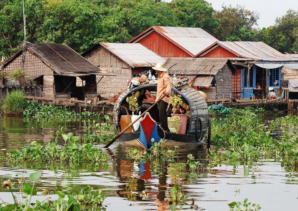Di Battambang ho amato: il silenzio delle sue strade la sera quando tornavo a piedi in hotel e mi sembrava di essere in un paesotto tranquillo; la campagna circostante color ocra e secca, a tratti verde; il mango milk shake “più buono di sempre” del mercato notturno che sognavo per tutto il giorno; le botteghe equo-solidali con gli animali di pezza colorata, gli incensi e le saponette di frangipane; i fogli di riso stesi ad asciugare sul bordo della strada; i bambini che ti dicono “Hello!”; le case tradizionali fuori dalla città; il lungofiume di giorno con le giostre di latta per i bambini e gli edifici francesi di inizio Novecento; le panchine vista fiume che quando le ho viste ho pensato: “Se abitassi qui, sarebbe il mio posto preferito per leggere“; le mamme cambogiane che cullano i loro figli dentro un’amaca all’ombra e intanto fanno altro; i monaci che passano da una sponda all’altra del fiume utilizzando le barche e per i miei occhi europei diventavano un’incantevole macchia color zafferano; il mango milk shake, l’ho già detto?
