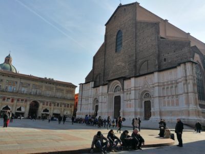 Da Piazza del Nettuno quello che attirerà la vostra attenzione è Piazza Maggiore. Vi attireranno i Palazzi medievali che la circondano e la Basilica di San Petronio, dedicata al santo patrono della città. Iniziata nel 1390, le sue dimensioni avrebbero dovuto superare quelle della Basilica di San Pietro in Vaticano. I lavori furono per questo interrotti dallo Stato Pontificio. La Basilica appare ancora oggi incompiuta nella facciata e nelle navate laterali. Non sarà la Basilica più grande del mondo ma è sempre la sesta più grande d’Europa.