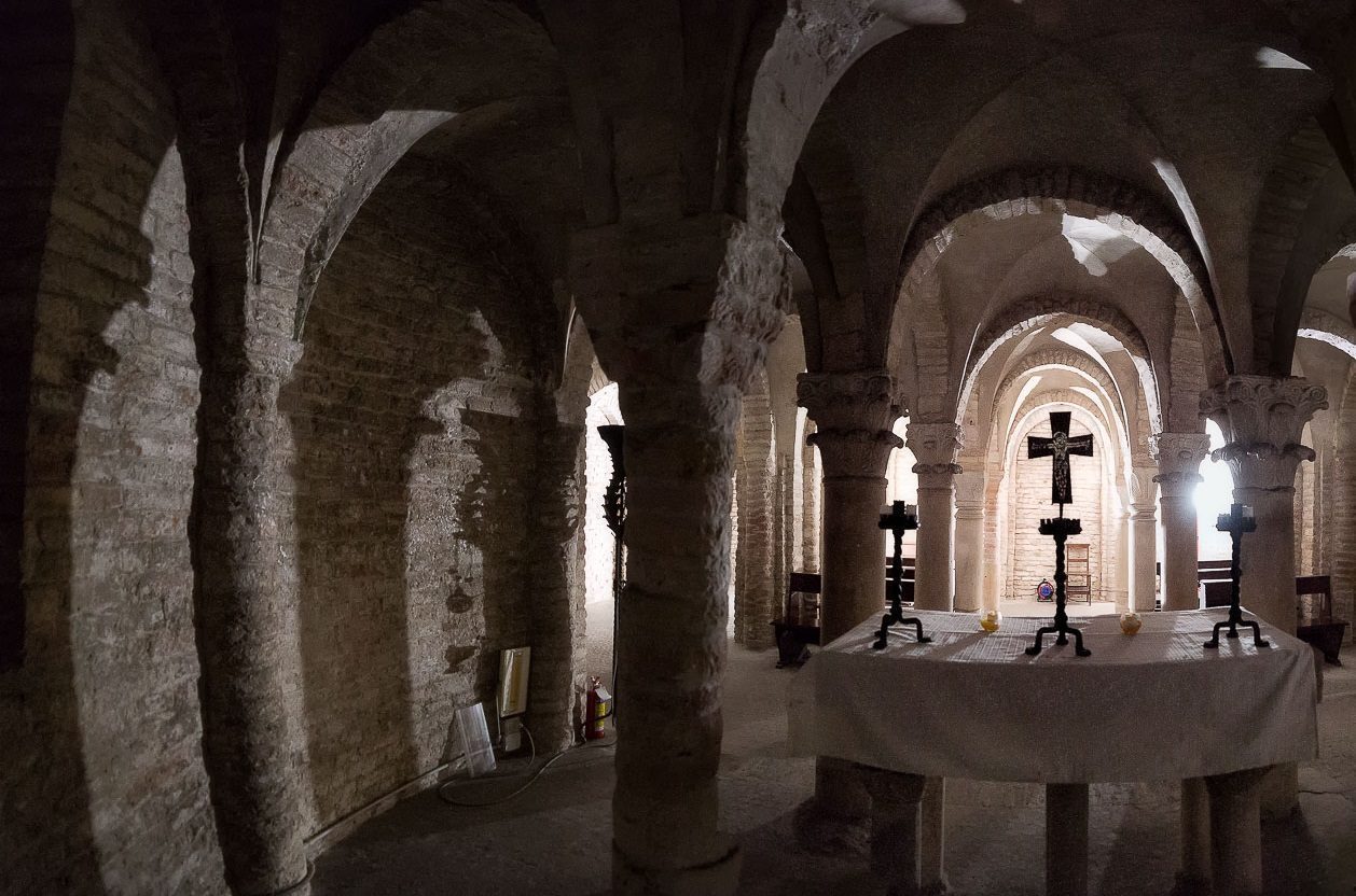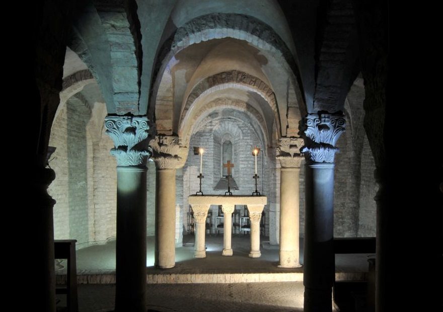 La Cripta è molto piccola, composta da tre navate, con quattro colonne sovrastate da capitelli ognuno differente dall’altro, che precedono l’altare. Molte leggende aleggiano intorno a questo spazio a lungo dimenticato; la guida ve le racconterà.