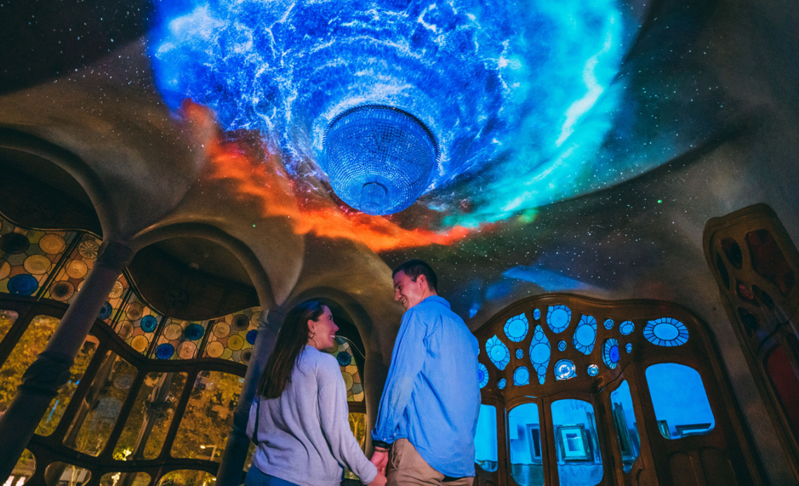 Questo spettacolo gratuito prevede ogni sera un’affascinante gioco di luci e note in grado di stupire, entusiasmare ed incantare. Per omaggiare il noto l’architetto e risaltare l’illuminazione speciale è stata scelta la musica composta da Jordi Longàn. Non a caso, la visita notturna diventa un suggestivo viaggio nel passato alla scoperta dell’atmosfera dello scorso secolo tra proiezioni strabilianti, contenuti in realtà aumentata e un’esposizione narrativa coinvolgente. I visitatori possono immedesimarsi nei personaggi che hanno popolato Casa Batlló per diventare parte essenziale di un percorso che si dipana tra stupende scenografie, spazi pittoreschi e atmosfere surreali. Le proiezioni sono le principali artefici di questo spettacolo che mette in scena una rappresentazione fantastica e risveglia il fascino più celato di un monumento unico al mondo.