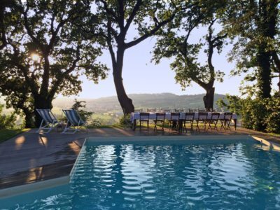 Il panorama di cui si gode la mattina facendo colazione a bordo piscina con vista sulle colline e con Gradara sullo sfondo è impagabile.