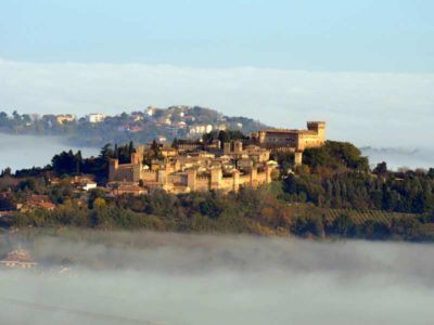Questo delizioso borghetto è oggi un resort con al centro una piscina, il che rende questo posto perfetto per una pausa relax lontani dalla frenesia estiva della Riviera Romagnola. La cornice è quella delle dolci colline Romagnole, nel colle di fronte, si erige la spettacolare Gradara.