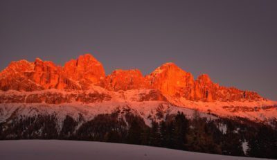 Durante il tramonto, sempre dal ponte Talvera, si assiste a uno dei momenti più suggestivi della giornata per tutti i bolzanini, quando le vette del Rosengarten (gruppo dolomitico del Catinaccio) si illuminano e si colorano di rosa e rosso intensi, incorniciando, come in un quadro, la vista sulla parte storica della città e regalando uno degli spettacoli più belli del mondo.