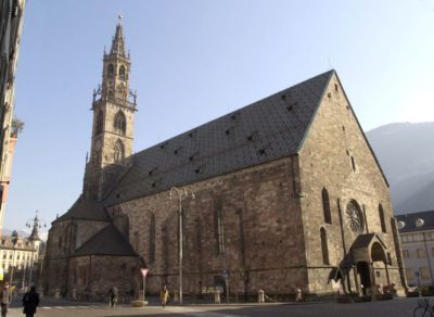 Dalla piazza si raggiunge il Duomo di Bolzano, una maestosa cattedrale gotica di origini romaniche. Nelle giornate di sole il tetto in marmo colorato risplende e il campanile cesellato, ricco di di dettagli ed ornamenti, svetta nel cielo terso. Sul lato esterno che dà su Piazza Walter, c’è la porcina del vino, un portale gotico decorato con delle statue che rappresentano dei vignaioli. All’interno del Duomo, oltre al meraviglioso pulpito, è possibile vistare una ricca esposizione di reliquie e corredi sacri medioevali.