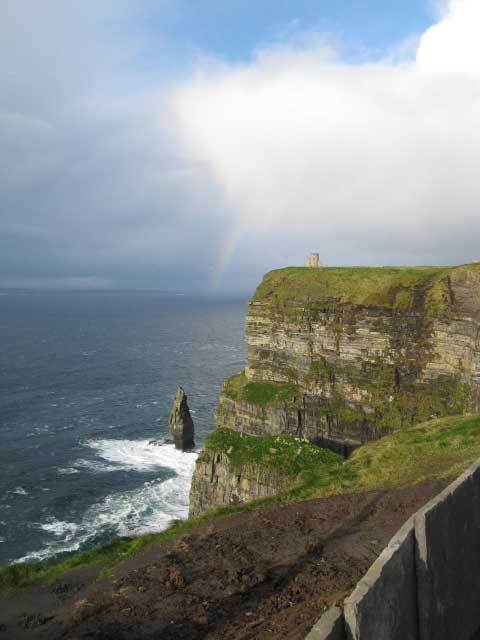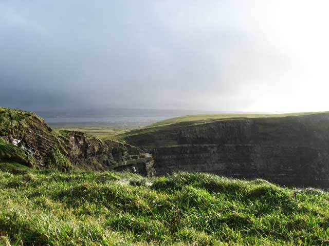 Con il sole le scogliere sono meravigliose, ma si sa, l’Irlanda è capace di stupire con i suoi repentini cambi di clima! E così anche sotto la pioggia o con il vento sferzante (che in realtà è quasi sempre presente sulle alte scogliere), le Cliff of Moher mantengono il loro fascino, con le acque dell’oceano che si muovono agitate, infrangendosi sugli scogli e il cielo che, riaprendosi, regala splendidi arcobaleni ad incorniciare la scena, proprio come in un quadro.