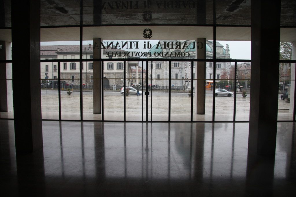 Lasciandosi alle spalle il Duomo e oltrepassando i binari della linea ferroviaria che collega Como a Milano si arriva davanti alla odierna sede della Guardia di Finanza.