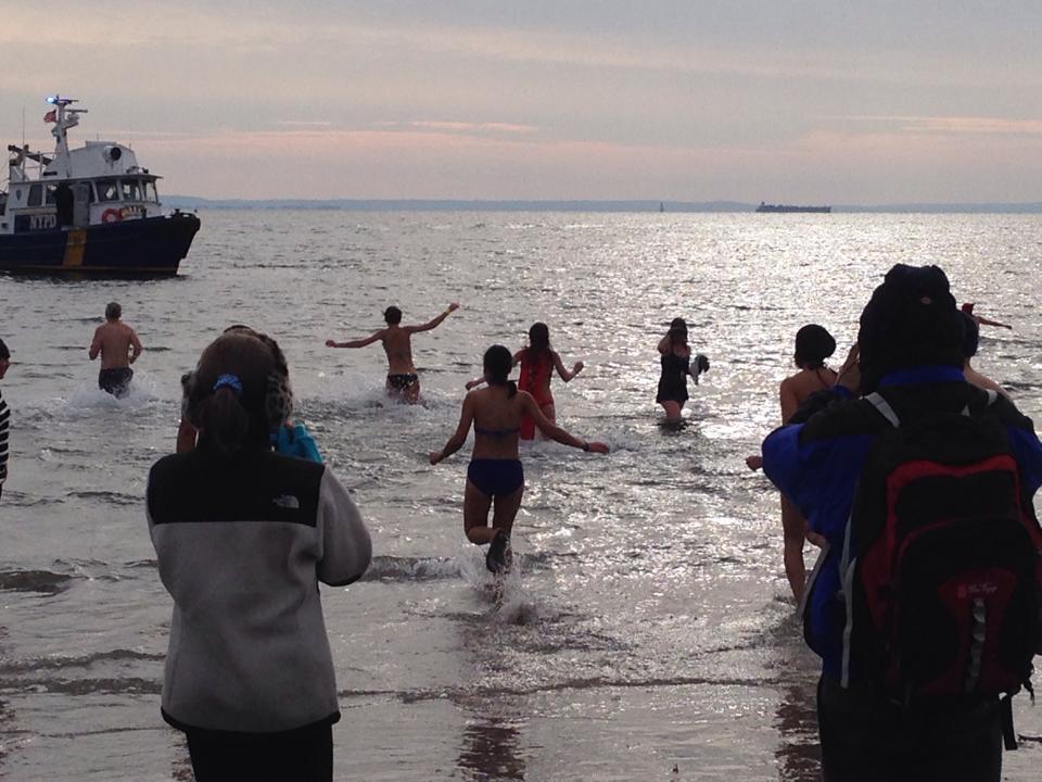 Io sono andata il primo dell’anno a coney island dopo non troppe ore di sonno per vedere cosa facevano, in realtà pensavo di trovare tre/5 persone che entravano e uscivano dall acqua e invece centinaia di persone dai 21 anni ai 70 che entravano come se nulla potesse fermarli.