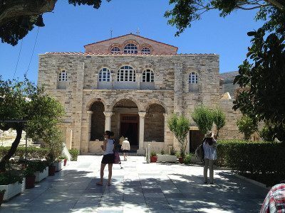 La chiesa fu edificata sulle rovine di un antico tempio greco e nel secolo 18° le icone vennero decorate con dell’argento, secondo la tradizione greco ortodossa. Il cortile della chiesa ospita il Museo Bizantino, che comprende numerose icone e artefatti a testimonianza della lunga storia della chiesa, di più di 1700 anni. Inoltre nel cortile si possono ammirare le rovine dell’antico tempio greco e del gymnasium di epoca romana, e visitare il negozietto di souvenir e libri.
