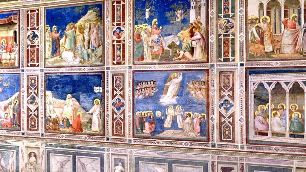Ad una struttura esterna la Cappella, molto semplice e lineare, si contrappone alla ricchezza degli affreschi che la adornano internamente. Affreschi spettacolari realizzati da Giotto tra il 1303 e il 1305, in circa 855 giorni di lavoro, e i quali rappresentano scene del Vecchio e del Nuovo Testamento, dipinte su di una superficie di circa 1000 mq.