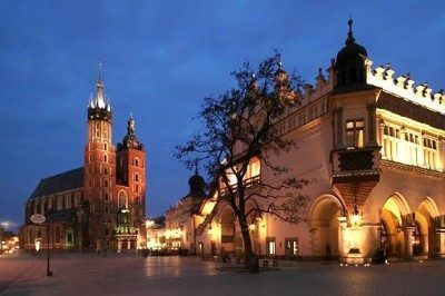 Su uno degli angoli di Piazza del Mercato, si osserva la bella Basilica di Santa Maria, affiancata da due torri di altezza diversa. Dalla torre più alta, che un tempo serviva da torre di guardia,ogni giorno dell’anno e ogni ora, un trombettista, in direzione dei quattro punti cardinali, esegue quattro volte una melodia interrotta bruscamente nel bel mezzo della battuta, a ricordo del sacrificio di una vedetta che, nel tentativo di avvisare i cracoviani dell’imminente invasione dei Tartari, fu trafitta in gola da una freccia mentre suonava l’allarme. Questa stessa melodia, ogni giorno, alle ore 12:00, viene trasmessa anche dalla Radio Nazionale Polacca.