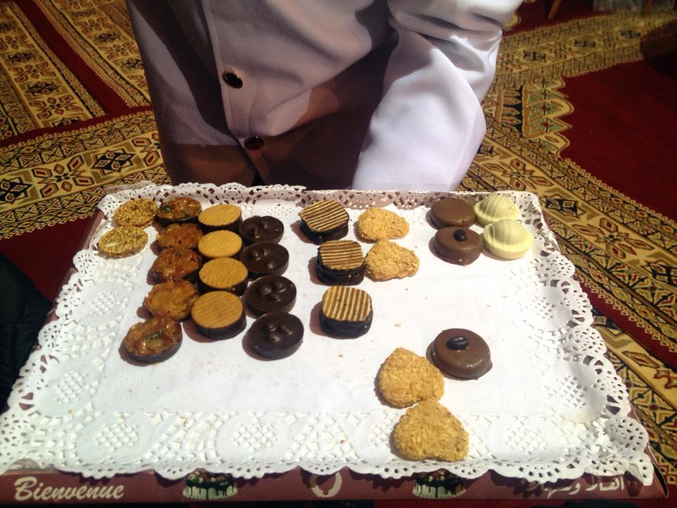 La gobba io non l’ho assaggiata devo ammetterlo, ma chi l’ha fatto mi ha detto che è simile al midollo o all’osso buco. Infine una curiosità, a Dakhla e nel sud del Marocco durante le cene di un certo rilievo, vengono serviti pasticcini e dolcetti locali prima di iniziare il pasto.